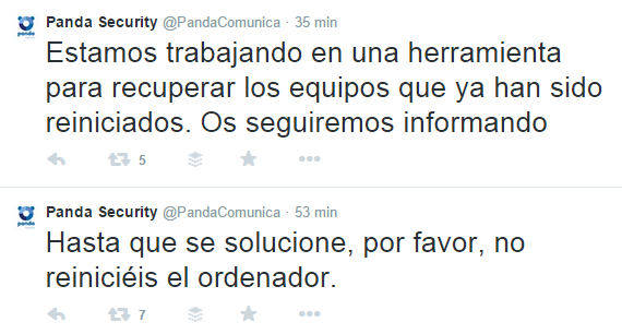 Desde Panda aseguran que están trabajando a toda velocidad para sacar una actualización que lo solucione, y que para los equipos ya estropeados va a sacar una herramienta de recuperación del sistema. Desde eso han pasado ya 6 horas y siguen sin hacerlo.