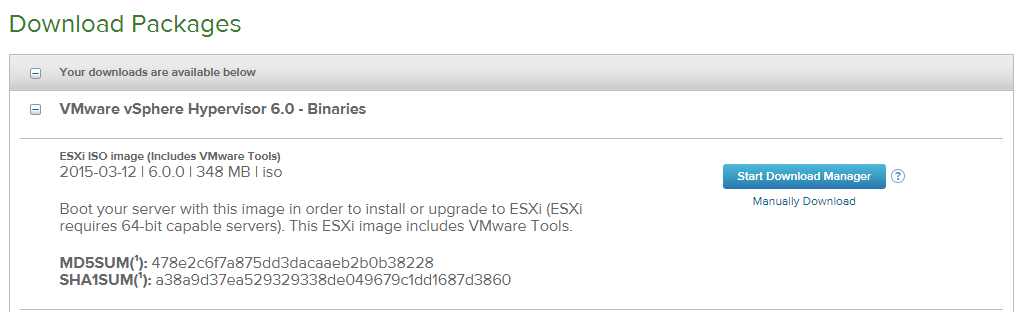Iremos a esta pantalla en la que nos dan las opciones de descarga, en nuestro caso hemos descargado vSphere 6.0.